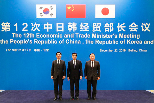 三方重申,將積極推動(dòng)2020年如期簽署區(qū)域全面經(jīng)濟(jì)伙伴關(guān)系協(xié)定(RCEP),并在此基礎(chǔ)上共同加快推進(jìn)中日韓自貿(mào)協(xié)定談判。
