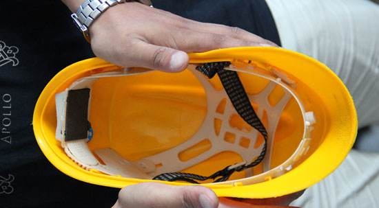 頭戴黃色安全帽的是工人,記者查看其帽子發(fā)現(xiàn),合格證上材質(zhì)注明為 "ABS",帽襯也比較厚實。白色安全帽的是管理人員,帽子材質(zhì)為 " 玻璃鋼 "。該管理人員說,受網(wǎng)上 " 安全帽碰撞 " 視頻影響,公司于 19 日在工地上測試安全帽性能," 已發(fā)通知要求,全部更換安全帽,工人的帽子已經(jīng)交到施工方手上。" 對于市面上幾塊錢的劣質(zhì)安全帽他表示," 那有什么用呢?"