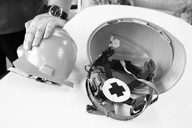 在工棚一間辦公室內(nèi),三名男子正在休息,桌上擺放的是紅色的安全帽,后經(jīng)查看確認是 " 玻璃鋼 " 材質(zhì)。" 工人好像戴的是塑料安全帽 ",見陌生人問及此事,一陳姓負責(zé)人反感稱," 還戴鋼盔啊 ",旁邊一男子解釋道 " 都是合格產(chǎn)品,經(jīng)檢測沒問題。"