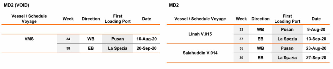 同時(shí),赫伯羅特進(jìn)一步調(diào)整了從亞洲到地中海的服務(wù)網(wǎng)絡(luò),實(shí)行以下8月份停航計(jì)劃以及可替代方案。