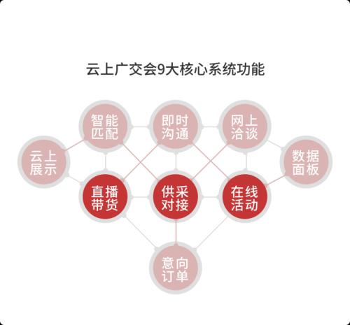 在探討品牌展會如何因地制宜的問題前,我們先來深入探索廣交會線上展會運營模式。云上廣交會是相對完整的龐大的線上展會管理系統(tǒng),“云上展示、直播大廳、供采大廳、智能匹配、即時溝通、網(wǎng)上洽談、在線活動、意向訂單及數(shù)據(jù)面板”等9項功能中,“云上展示”、“直播”、“供采對接”是核心也是串聯(lián)整個系統(tǒng)的基礎(chǔ)模塊。