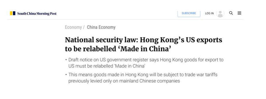 據(jù)媒體最新報(bào)道,根據(jù)美國(guó)政府的一份公告草案,9月25日以后,香港制造的出口到美國(guó)的商品必須貼上“中國(guó)制造”的標(biāo)簽。