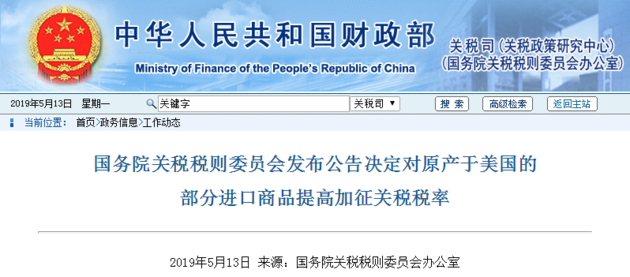 5月13日晚間,國務(wù)院關(guān)稅稅則委員會發(fā)布公告決定對原產(chǎn)于美國的部分進口商品提高加征關(guān)稅稅率。