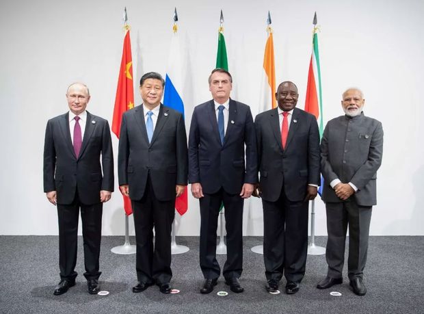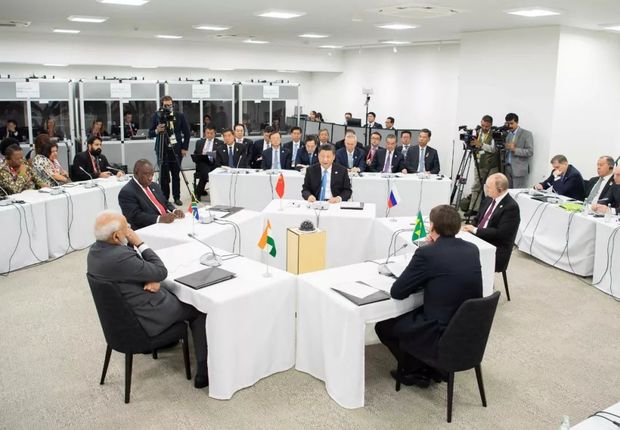 6月28日,金磚國(guó)家領(lǐng)導(dǎo)人會(huì)晤在大阪舉行。國(guó)家主席習(xí)近平、巴西總統(tǒng)博索納羅、俄羅斯總統(tǒng)普京、印度總理莫迪、南非總統(tǒng)拉馬福薩出席。