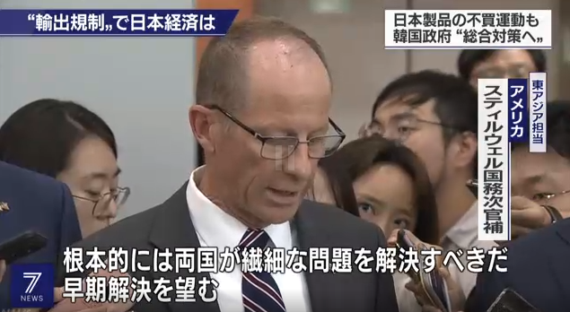 據(jù)日本NHK電視臺(tái)報(bào)道,美國負(fù)責(zé)亞太事務(wù)的助理國務(wù)卿史迪威16日抵達(dá)韓國,與韓國高層人士會(huì)晤。據(jù)悉,因日本限制對(duì)韓出口半導(dǎo)體材料,日韓關(guān)系惡化,各方都在關(guān)注美國將對(duì)日韓摩擦提出何種看法。