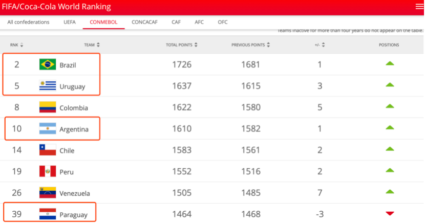提到阿根廷、巴西、巴拉圭、烏拉圭這4個南美國家,很多人的第一反應(yīng)肯定是足球。按照國際足聯(lián)的最新排名來看,他們的排名分別為第10名、第2名、第39名和第5名。