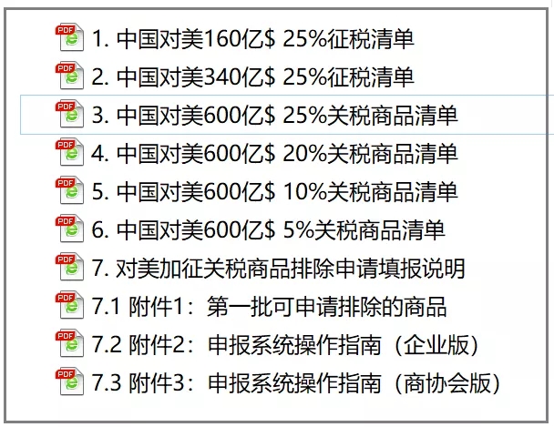 A. 美國(guó)對(duì)華所有加征關(guān)稅清單,及排除清單。