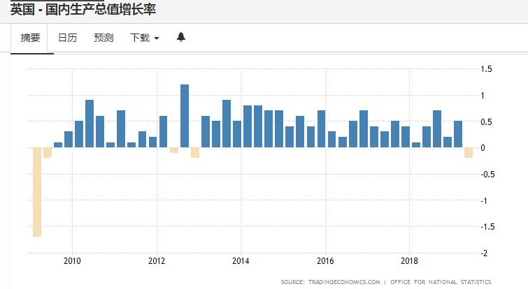 英國央行行長卡尼對英國經(jīng)濟(jì)表現(xiàn)的擔(dān)憂變?yōu)榱爽F(xiàn)實(shí)。英國國家統(tǒng)計(jì)局(ONS)9日發(fā)布的最新數(shù)據(jù)顯示,受全球經(jīng)濟(jì)增速放緩和脫歐不確定性影響,英國二季度國內(nèi)生產(chǎn)總值(GDP)環(huán)比下滑0.2%,較一季度0.5%的增速明顯惡化。這是英國經(jīng)濟(jì)自2012年四季度以來首次陷入負(fù)增長。