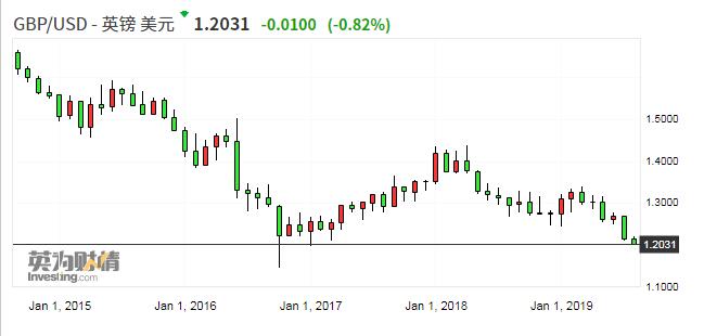 受全球經(jīng)濟(jì)放緩和無協(xié)議脫歐風(fēng)險上升影響,英國經(jīng)濟(jì)七年來首次環(huán)比下滑,英鎊匯率跌至2017年以來低位。不少機(jī)構(gòu)擔(dān)心,最壞的情況下硬脫歐將令英鎊跌至與美元平價。