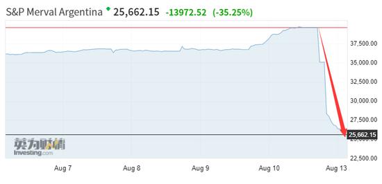 截至當(dāng)?shù)貢r(shí)間14點(diǎn)30分,阿根廷S&P Merval指數(shù)暴跌38%,金融和能源類股跌幅居前。