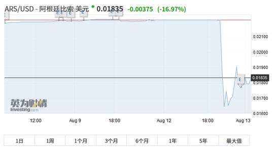 另?yè)?jù)路透社報(bào)道,阿根廷以歐元計(jì)價(jià)的債券下跌近9美分,債券收益率則上漲了近3%。在北京時(shí)間8月12日(周一)晚間美股開盤后,一只追蹤阿根廷股市的基金也暴跌了22%。