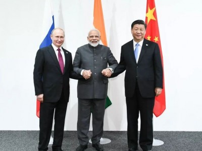 6月28日,國(guó)家主席習(xí)近平在大阪出席中俄印領(lǐng)導(dǎo)人會(huì)晤,同俄羅斯總統(tǒng)普京、印度總理莫迪就當(dāng)前國(guó)際形勢(shì)、重大國(guó)際和地區(qū)問(wèn)題、三方合作深入交換意見(jiàn)。