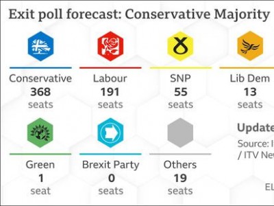當(dāng)?shù)貢r間12日晚上10點,英國大選投票結(jié)束。根據(jù)媒體出口民調(diào)顯示,保守黨贏得絕對多數(shù)席位,首相約翰遜預(yù)計贏得大選。