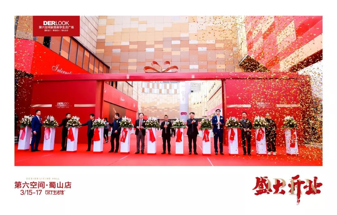 隨著現(xiàn)場(chǎng)數(shù)千位見(jiàn)證者經(jīng)久不息的掌聲,光芒聚焦開(kāi)業(yè)典禮舞臺(tái),10位嘉賓共同為第六空間蜀山店設(shè)計(jì)生活館剪彩啟幕。