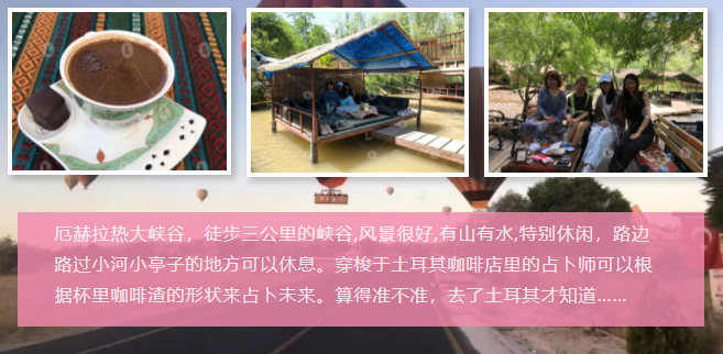 本次展團(tuán)行程領(lǐng)肯安排了展期行程和展后行程兩種,游覽了新皇宮、大巴扎、小巴扎、情人山、塔克西木廣場、藍(lán)色清真寺、圣索菲亞大教堂、羅馬競技場、卡帕多奇亞、代林庫尤地下城、鴿子谷、厄赫拉熱峽谷等景點~~