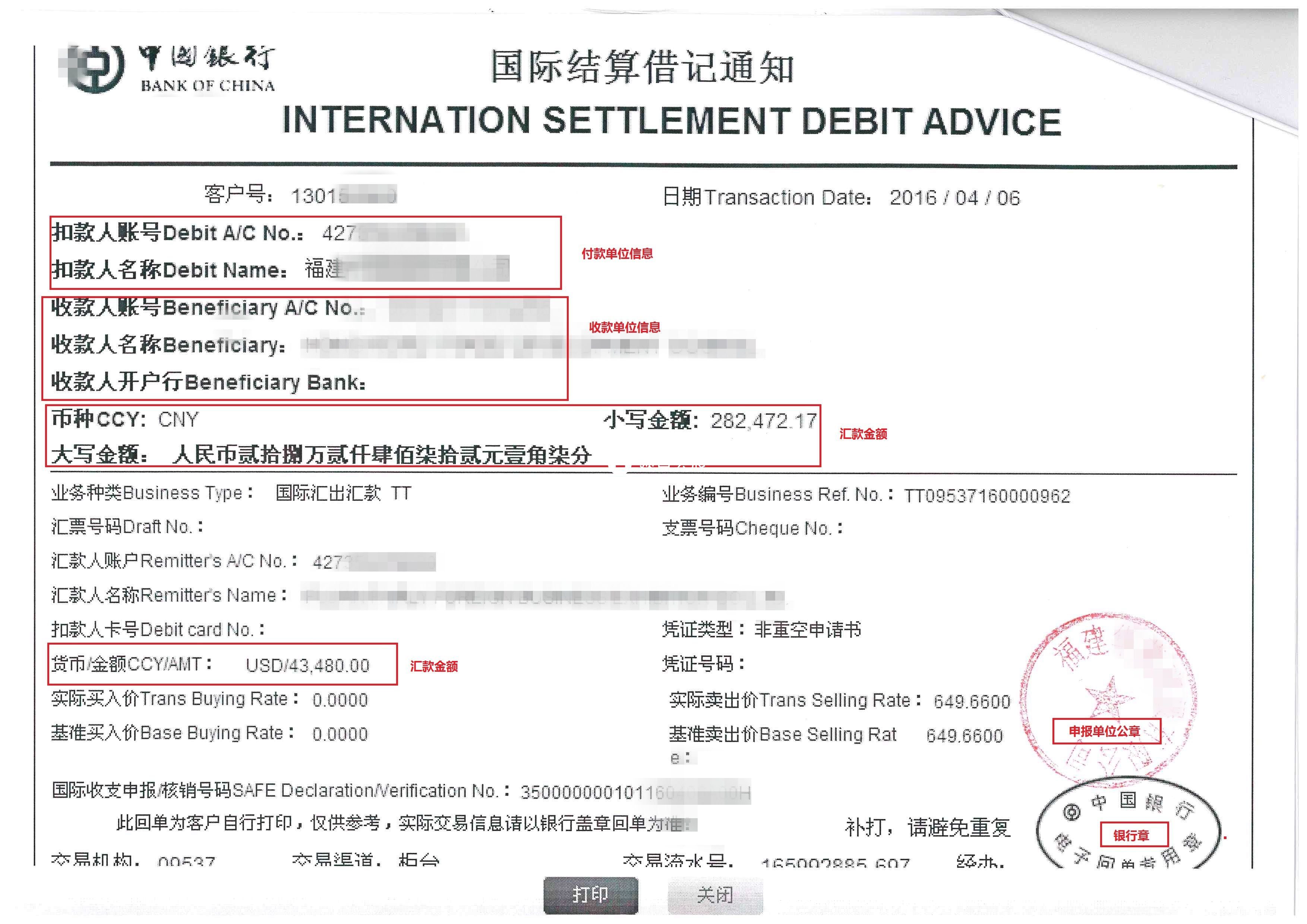 *境外匯款銀行結(jié)算單 查看樣例