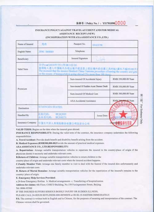 | * 境外醫(yī)療保險復(fù)印件 | 原件 | 保險合同應(yīng)覆蓋整個行程天數(shù) | 查看樣例 |